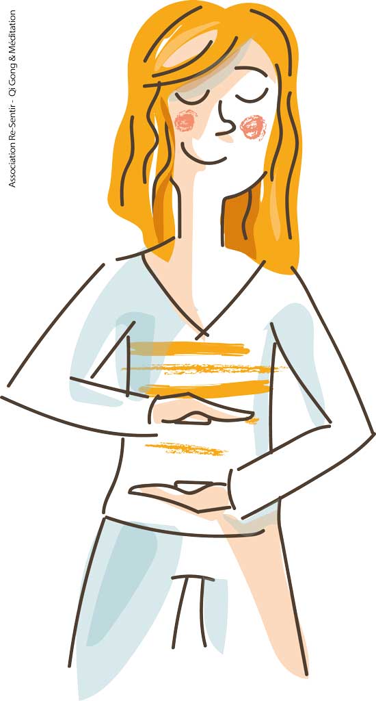 La séance commence par un temps de « Qi Gong calme » qui permet de poser notre esprit, de faire une coupure dans notre vie de tous les jours. C’est un temps de centrage sur soi qui permet de renforcer l'effet des mouvements qui suivront. Ensemble, nous trouverons une posture confortable (couché, assis ou en marchant) et favorisant la circulation d'énergie dans les méridiens.